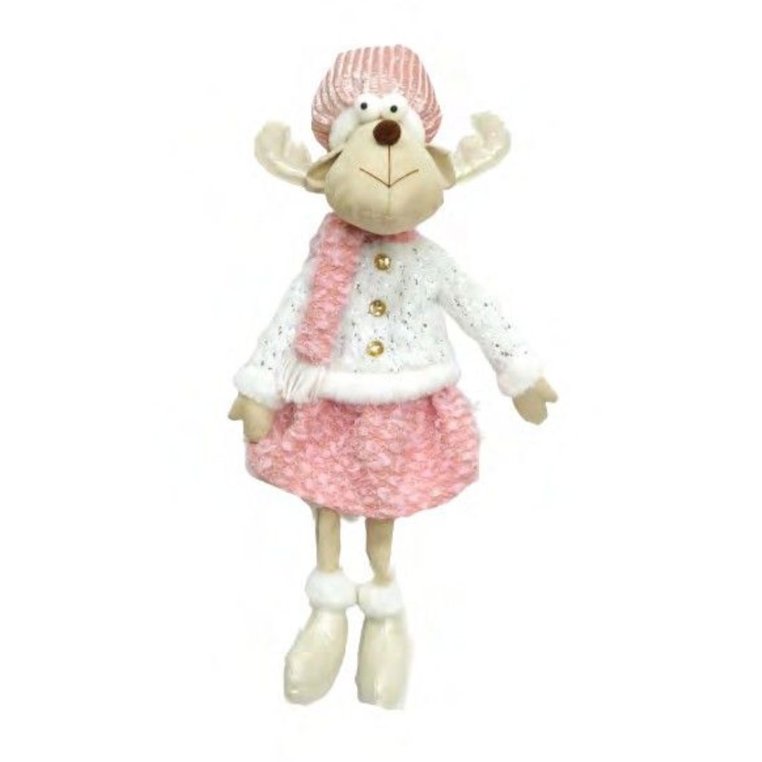 Boneco Rena em Pé – Rosa e Branco 38cm