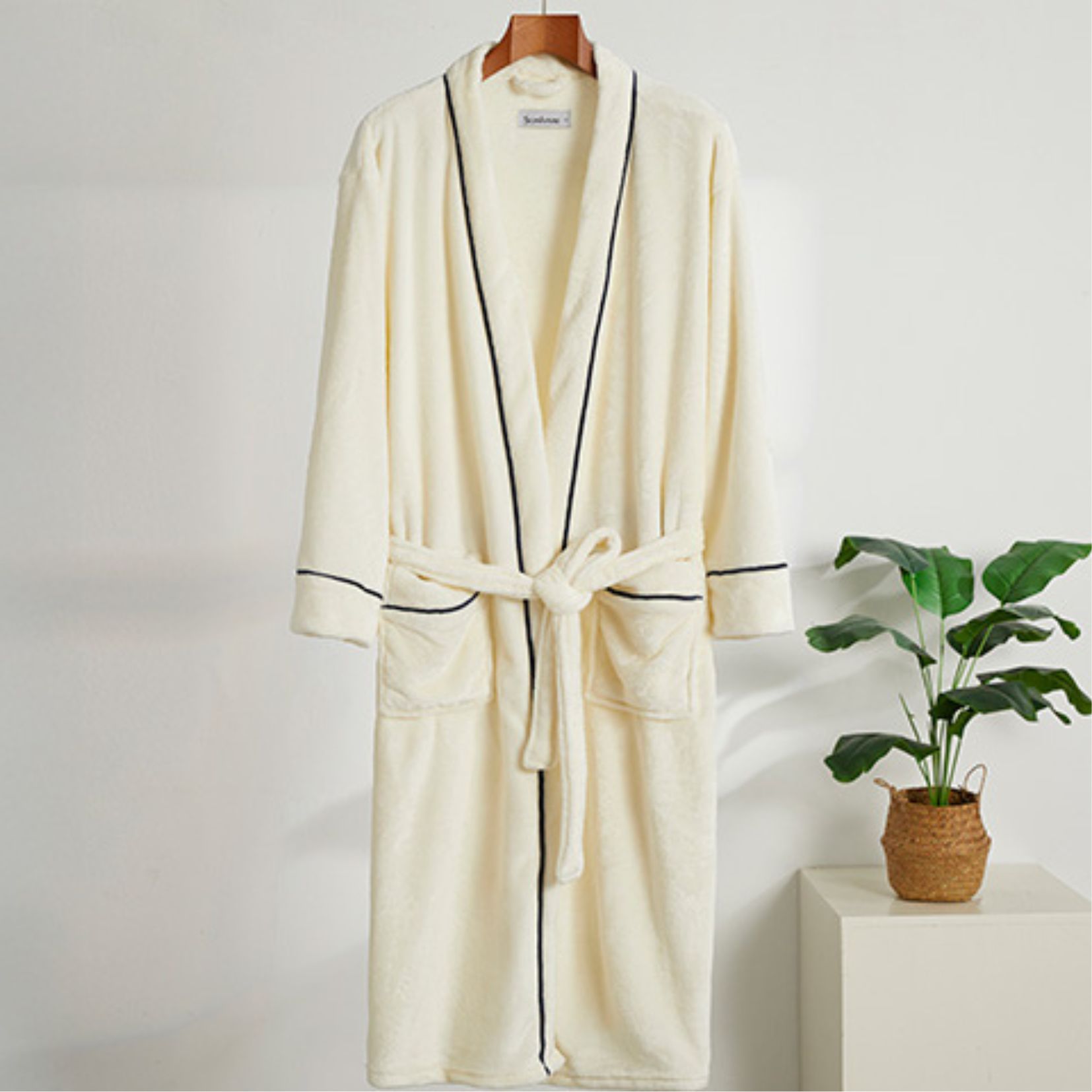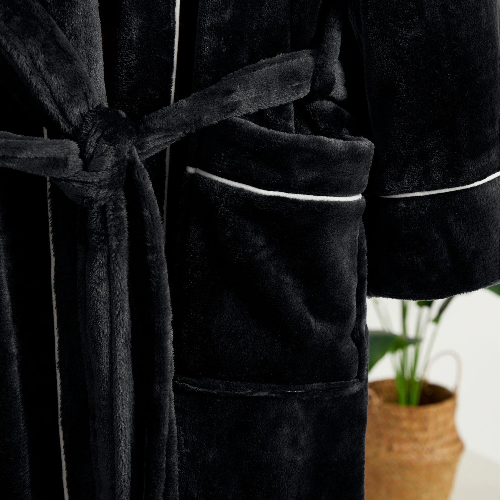 Confeccionado em tecido macio e aconchegante, é perfeito para o pós-banho ou para desfrutar de instantes de relaxamento com mais conforto. O acabamento em pipping adiciona um detalhe sutil e refinado, valorizando a peça com um charme clássico e atemporal.