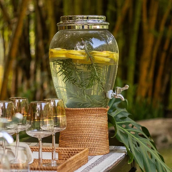 Elegante e funcional, a Suqueira Rattan é a escolha perfeita para servir suas bebidas com praticidade e charme em qualquer ocasião. Seja em almoços, recepções ou momentos especiais, ela mantém sucos, águas saborizadas e drinks sempre à disposição dos seus convidados, com frescor e sofisticação.