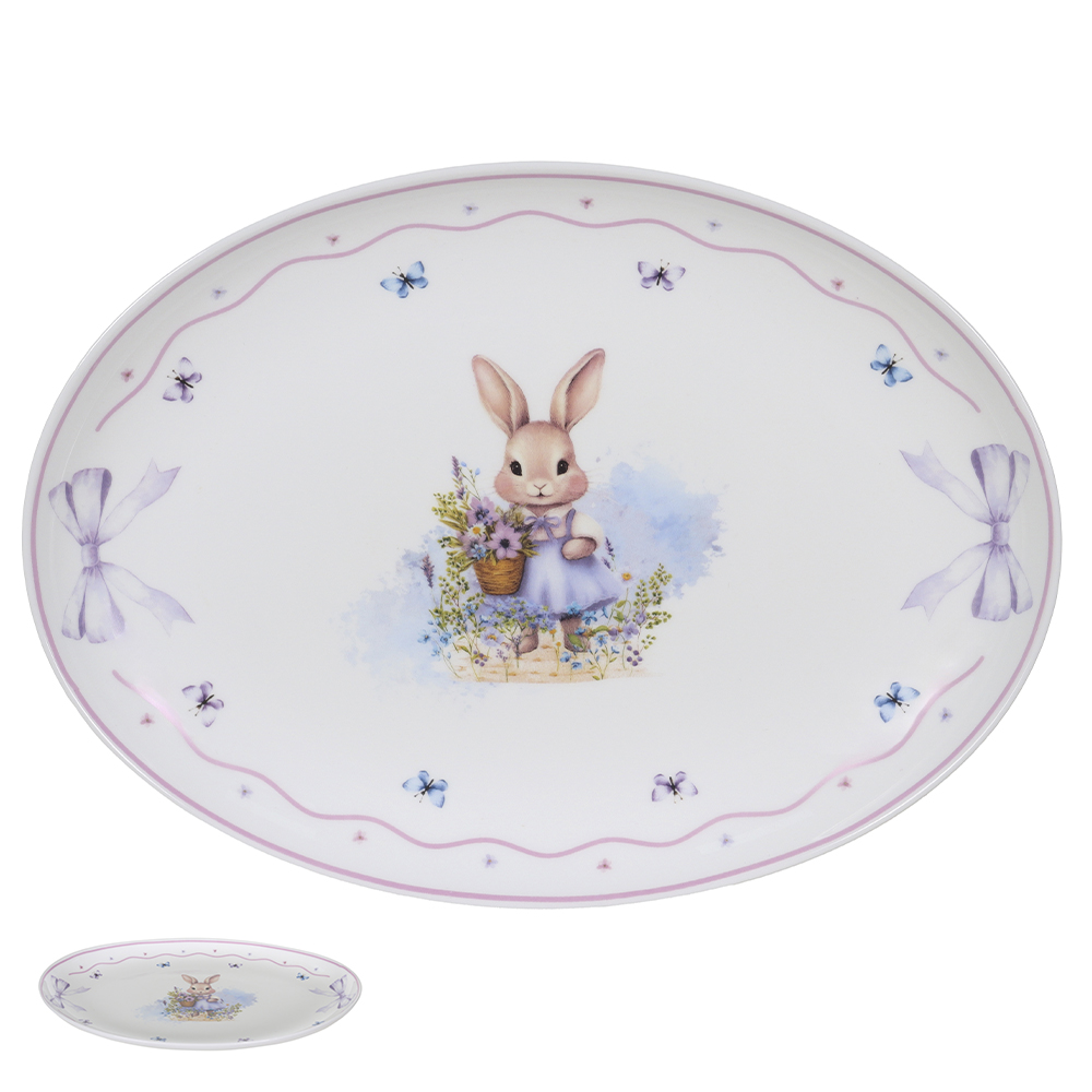 Bowl Porcelana Páscoa | Coelhos e Flores – 16x12x7cm