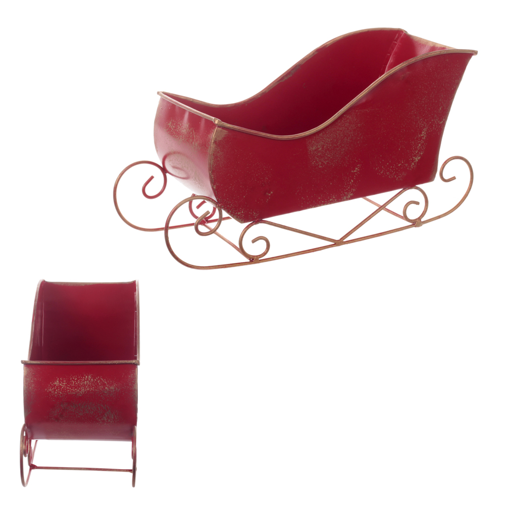 Trenó Decorativo de Metal – Vermelho 15x11x30cm