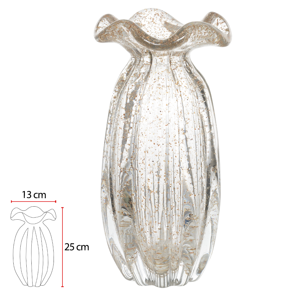Vaso Decorativo em Vidro tipo Murano | Transparente com Dourado – 25 x 13cm
