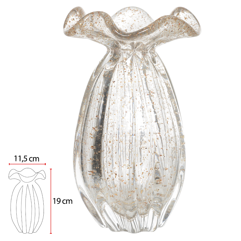 Vaso Decorativo tipo Murano | Transparente e Dourado – 19×11,5cm